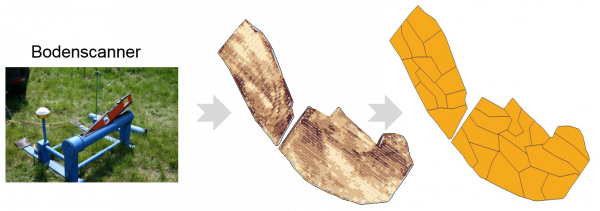 Der Bodenscanner ist ein physikalisches Messsystem, welches zerstörungsfrei und objektiv Unterschiede im Boden bestimmt. Der Messwert korreliert dabei hochgradig mit dem Tongehalt im Boden. Das bedeutet, dass niedrige Messwerte einen geringeren Tongehalt im Boden anzeigen als höhere Messwerte.