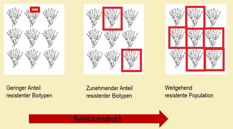 → erhöhte Resistenzentwicklung gegenüber Pflanzenschutzmitteln, da schon eine Veränderung des Schaderregers, durch natürliche Genmutation am Wirkort, zur Resistenzbildung führt